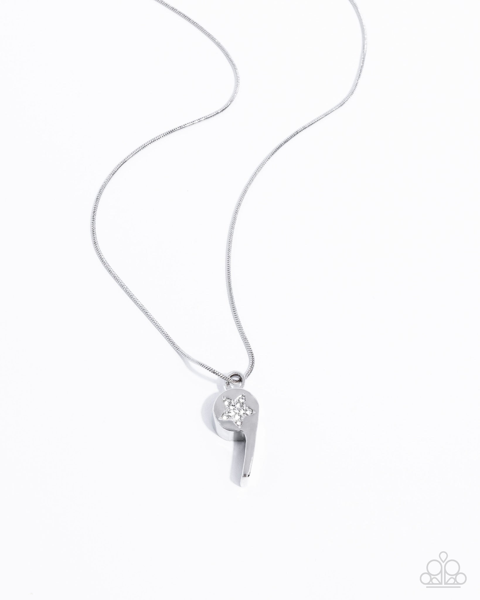 Featuring white rhinestones, a silver whistle-like charm is embellished with a shimmery star on its side, gliding along a silver snake chain for a charismatic, coach-inspired chic look. Features an adjustable clasp closure.